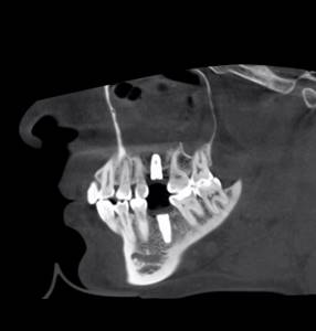 Первая операция – мы не можем сразу поставить имплантат из-за почти полного отсутствия кости между полостью рта и дном верхнечелюстной пазухи: